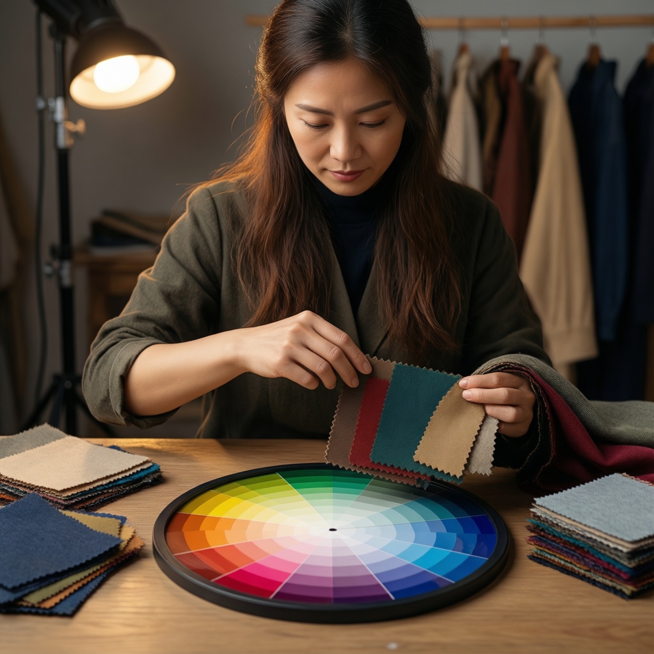 Сравните образцы рядом с тем, с чем изделие будет использоваться (диван, шторы, пальто). Если оттенок спорит по температуре, замените его на близкий по кругу, но нужной теплохолодности.